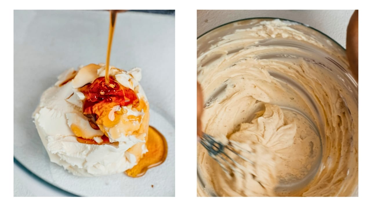 Cream cheese: Mix the cheese until smooth, add the honey and mix it all together well.