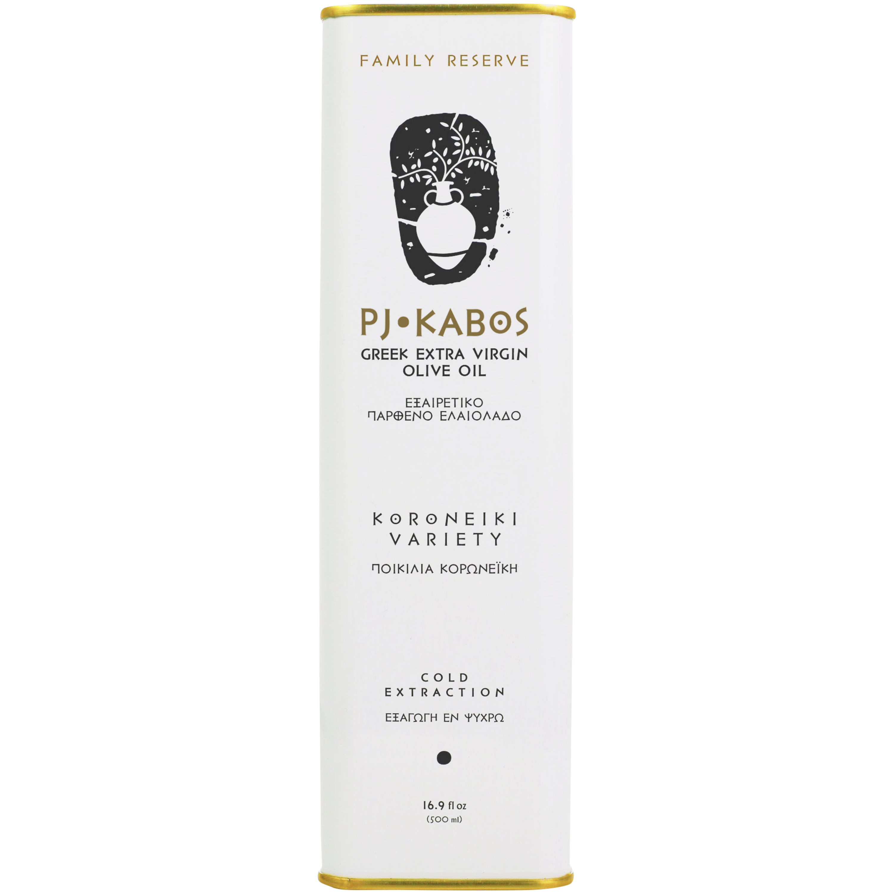 PJ KABOS Family Reserve - Medium, is an extra virgin olive oil in an easy-to-store tin that is high in polyphenols and adds a lovely taste and great health benefits to every meal.