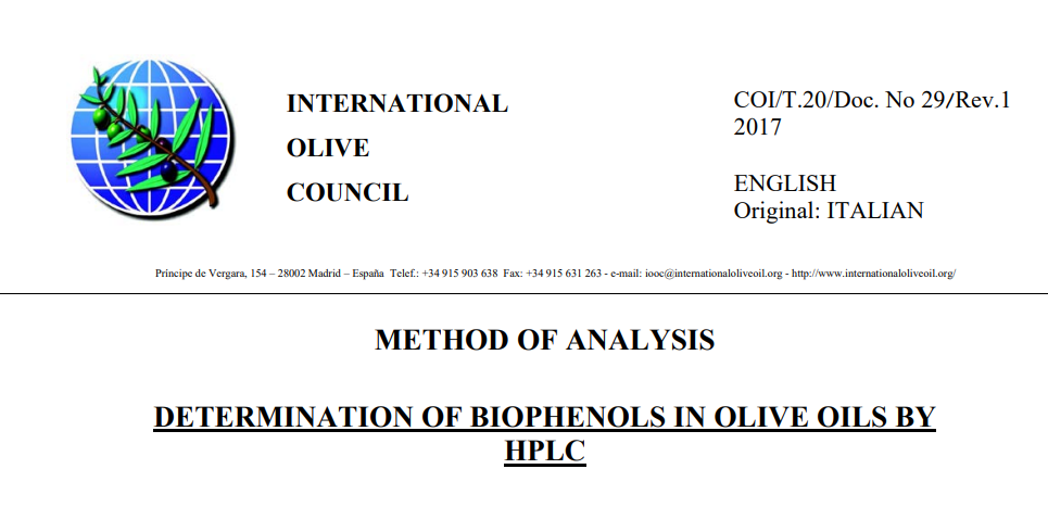 However, the document by the International Olive Council (IOC) entitled, Determination of Biophenols in Olive Oil by HPLC, is a scientific paper that is meant primarily for the eyes of chemists. You might find it interesting to look at. (Copy and paste to your search bar: COI/T.20/Doc. No 29/Rev.1 2017.)